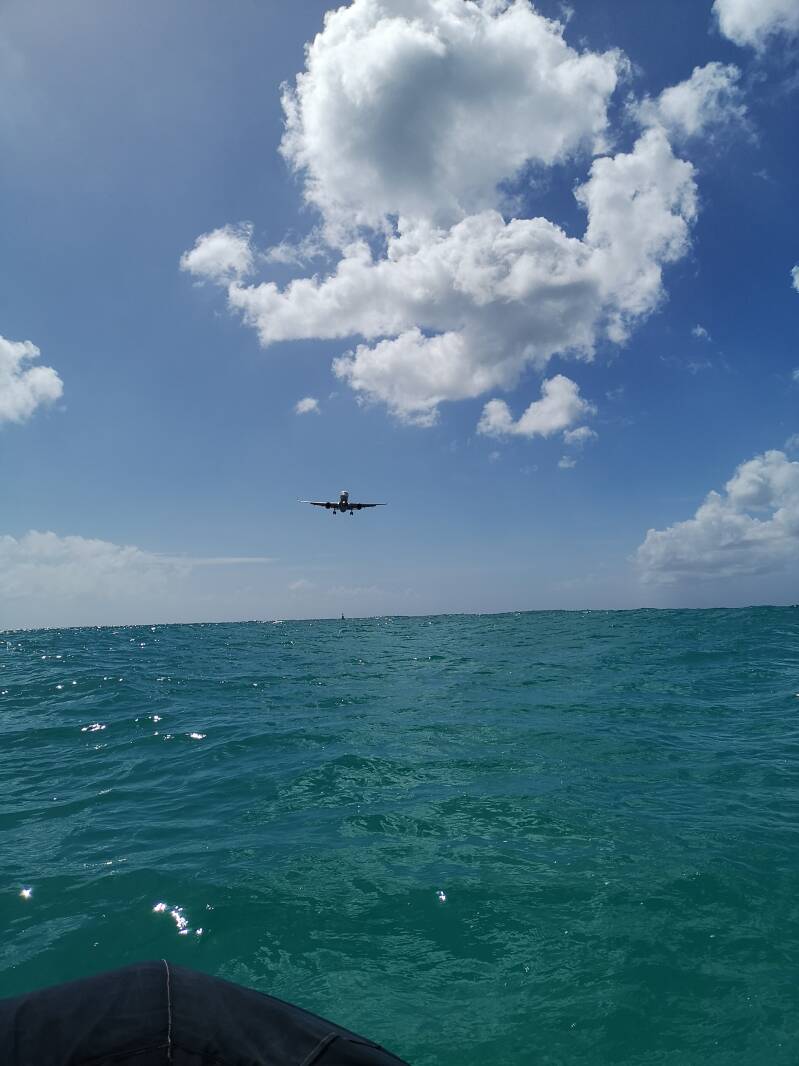 Heute ging es für uns mit dem Dingi an den "Maho Beach", welcher sich zwei Buchten weiter und direkt an der Landebahn des Flughafens befindet. Die Flugzeuge fliegen hier im Landeanflug weniger als 30 Meter hoch über den Strand hinweg, welches natürlich ein besonderes Schauspiel darstellt und wohl Flugzeugbegeisterte aus der ganzen Welt anlockt.